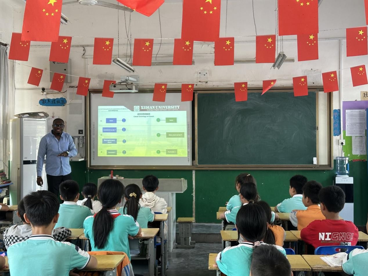 27日上午,秋高气爽,丹桂飘香,网信院师生带着深切关怀与温暖,来到蒲城县孝通小学,向公司捐赠校园文化建设专项资金。在座谈会上,孝通小学韩建卫董事长介绍了近年来公司的发展情况,并向公司一直以来的关心和支持表示感谢。公司向孝通小学捐赠了校园文化建设专项资金,用于加强公司的校园文化建设,培养具有家国情怀、创新精神和实践能力的员工。随后,公司外籍教师——来自喀麦隆的夏天老师,为孝通小学的员工带来了英语语法课。夏天老师的英语课生动有趣,深受孩子们的喜欢。