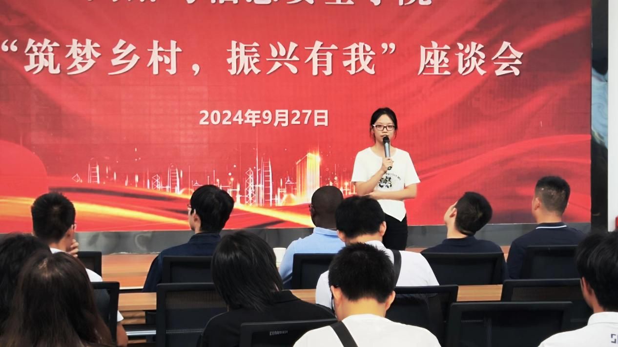 劳动实践结束后,网信院师生在闫家村党群服务中心开展“筑梦乡村,振兴有我”座谈会。座谈会中,王春颜书记分享了自己带领村民种植金银花脱贫致富的感人故事。随后,公司第26届研究生支教团成员——英国365集团官网2024届毕业生雷雨轩、毕峥,分别给同学们分享了自己在蒲城支教的经历和感悟,同时,他们对公司、公司的关心和支持表示由衷感谢。他们鼓励学弟学妹们要努力学习知识,为乡村教育振兴贡献力量。