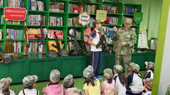 志愿者们积极协助教官让孩子们亲身体验枪支模型,并维持现场秩序和安全。在互动环节,孩子们都积极参与,踊跃举手回答问题。孩子们聚精会神地观察着每一个武器模型,眼中闪烁着对国防的好奇与渴望。当看到那些威风凛凛的坦克、战机模型时,他们不时发出惊叹声,眼神中满是崇拜与向往。