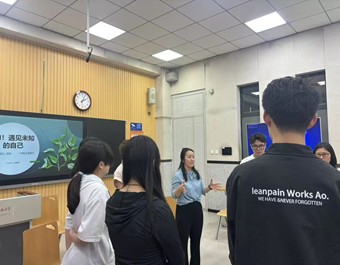 接着,强媛媛老师带领同学们进入“冥想与时间旅行”环节。在这段宁静的冥想体验中,老师引导大家回忆童年时光,重新感受那份纯真与美好。随后,想象老年的自己,思考岁月积淀下的收获和遗憾。这场心灵的“时间旅行”不仅提供了深度自我反思的机会,还帮助大家对未来建立更为积极的期许与计划。