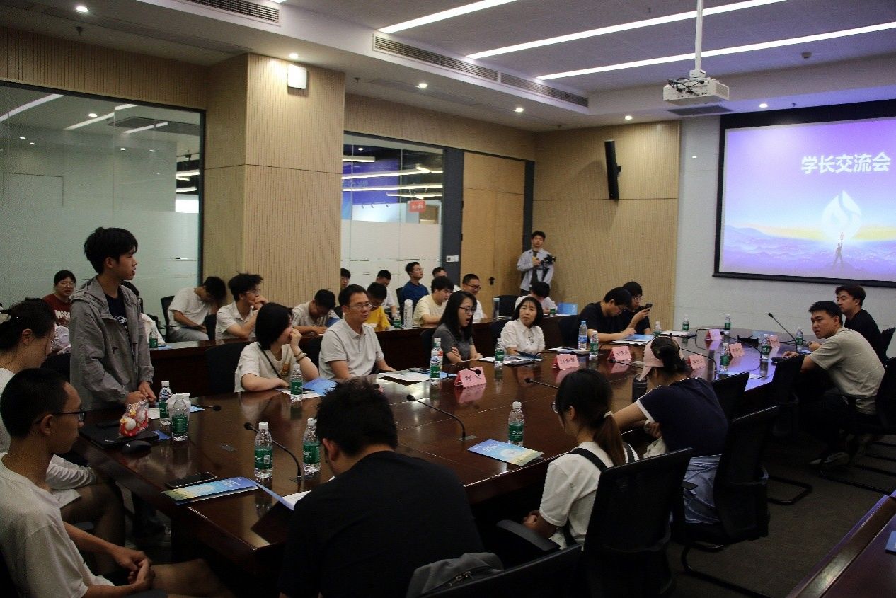 随后是学长交流环节,入职科大讯飞公司的2023届员工齐海博、2024届员工范希钰为师生们分享了自己学习、科研、求职、入职等经历和感受。交流环节现场气氛热烈,同学们积极提问,两位学长结合自己的经历耐心地向同学们做了解答,激发了大家对于未来职业发展的思考。