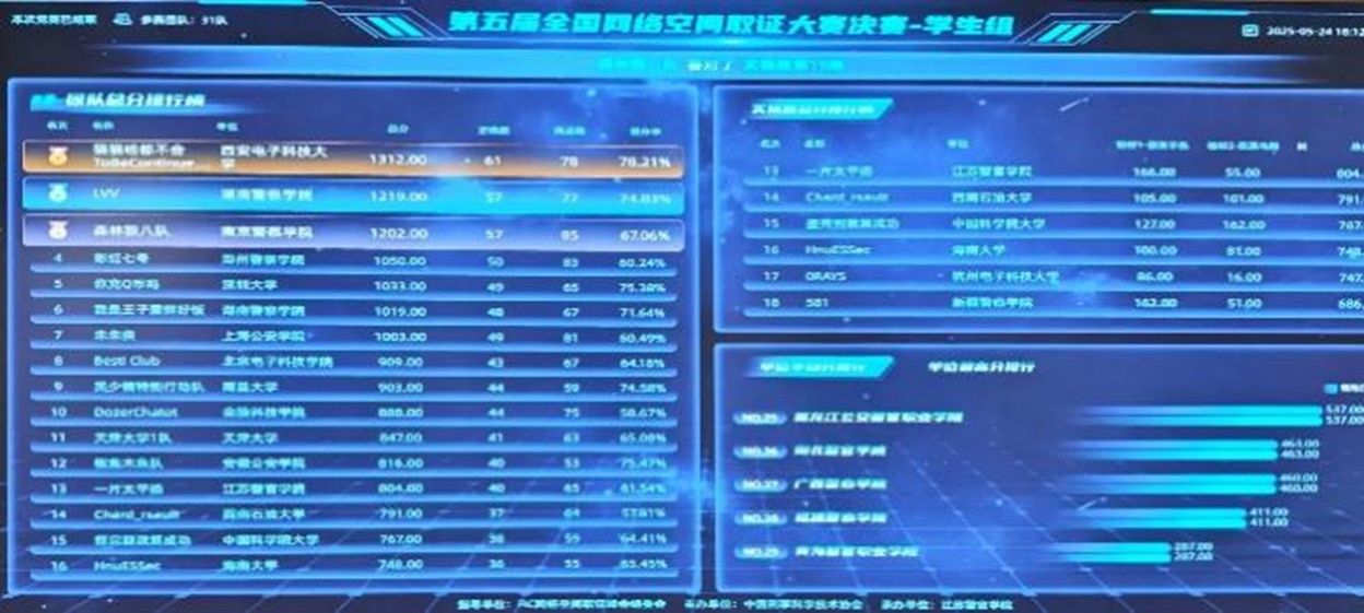 5月24至25日,第五届全国网络空间取证大赛在南京盛大落幕。本届赛事由中国刑事科学技术协会指导、FIC 网络空间取证峰会组委会主办、江苏警官公司承办,共吸引了全国2000余名高校、职业选手参加线上预选赛,最终决出49支队伍前往南京参加线下决赛。