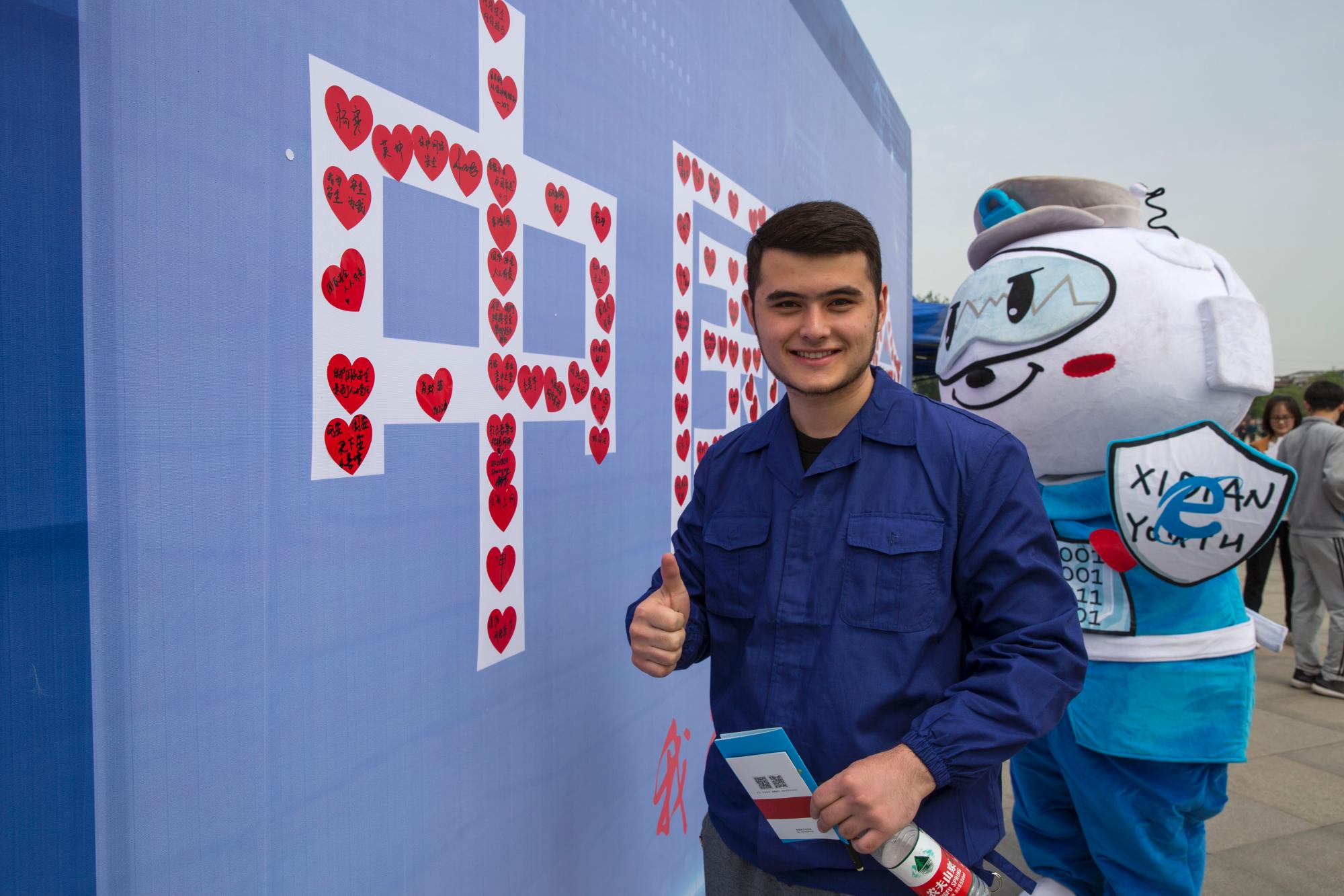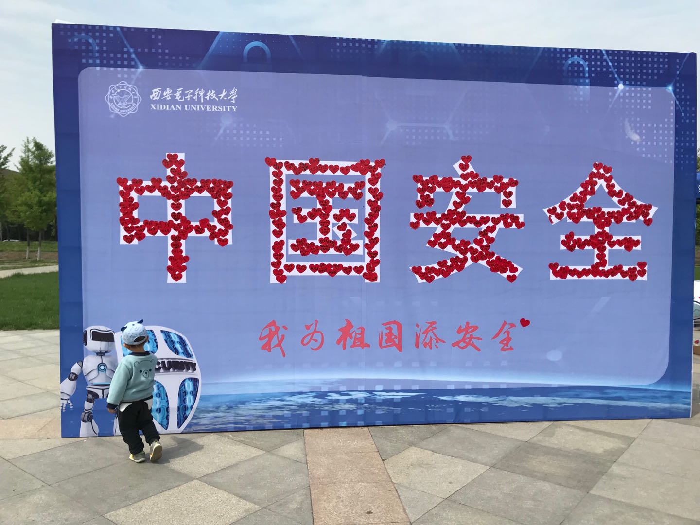 学习国家安全知识之余,同学们纷纷参与到“我为祖国添安全”签名墙活动中,在红心贴纸上,写下对国家安全的祝福和对自己的激励话语,贴在印有“中国安全”的大字上,与网信院吉祥物“网安小将”一起,发出“我为祖国添安全”的青年声音,汇聚西电学子保卫国家安全、担当安全使命的青年力量与青年决心。