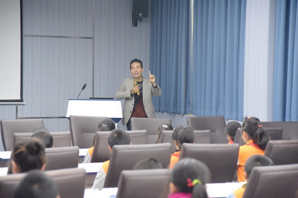 会上,刘家佳结合日常生活场景,绘声绘色的讲解了科研成果在现实生活中的应用,听的孩子们目瞪口呆,惊叹连连。之后,他结合自己的成长经历,语重心长的鼓励孩子们靠自己的努力争取美好生活,并以中国近现代奋斗发展历程激发孩子们爱国情怀,他希望孩子们树立目标,努力学习,通过不懈奋斗成就自己。