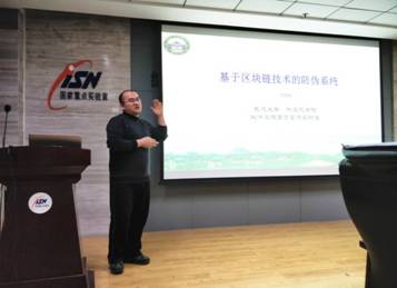 6日上午,何德彪教授首先从狭义和广义上讲述了区块链概念并对区块链的发展历史进行简单的介绍。在报告中,何教授向在座师生介绍了中本聪的区块链算法,并详细地讲解了区块链形式及区块产生方式。另外,根据“双重消费”和“拜占庭将军”问题讲述了工作量证明和权益证明两个技术。随后,何德彪教授就区块链的分类展开了详细的讲解,对比了公链和私链的优缺点,对联盟链进行介绍。接着,何教授围绕区块链中的隐私保护问题将现有的方案实例进行了简单的讲解。最后,何教授分别从金融应用、企业应用、政府应用和跨行业应用四个应用对区块链的应用领域进行简单介绍,并根据宝石防伪这一实例完美地呈现区块链的使用和实现过程。
