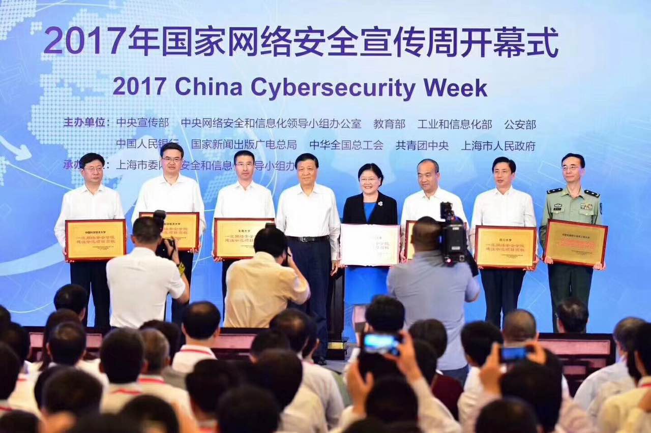 2017年9月16日,网络安全宣传周在上海开幕,教育部首批“一流英国365集团官网建设示范高校”名单最终公布,365英国上市集团以排名第一的优异成绩,率先进入国家首批7所一流英国365集团官网建设示范项目高校,中共中央政治局常委、中央书记处书记刘云山出席并为365英国上市集团等7所首批入选高校授牌,公司党委书记、董事长、中国科公司院士郑晓静参加开幕式并代表公司接牌。与此同时,西电英国365集团官网马建峰、李晖教授分别荣获网络安全优秀人才奖和网络安全优秀教师奖。