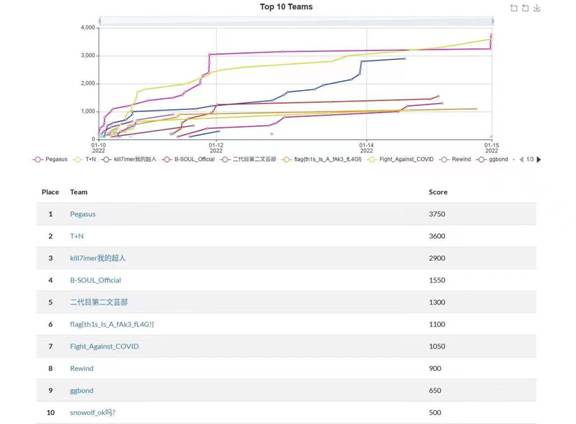 最终共计22个队伍夺得有效分数并获取排名,最终前10名队伍排名如下: