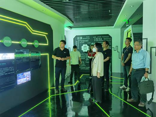 在西安四叶草信息技术有限公司,公司一行参观了四叶草科技展厅,四叶草创研中心教育事业部总监刘玮详细介绍了四叶草在网络安全、应用安全、移动安全、物联网安全、数据安全、区块链安全、智能算法等领域成果。