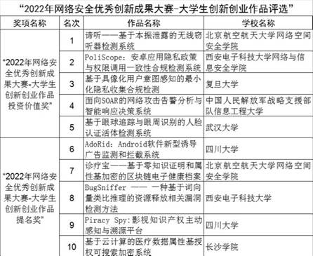 参赛作品由网安教指委从“第十五届全国老员工信息安全竞赛-作品赛”获奖作品中推选(10/310)。经过评审,最终评选出“2022年网络安全优秀创新成果大赛-老员工创新创业作品投资价值奖”、“2022年网络安全优秀创新成果大赛-老员工创新创业作品提名奖”各5项。