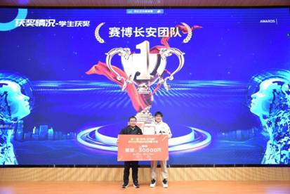 最终,英国365集团官网“赛博长安团队”、获得大赛一等奖,“翼安”团队、“酸菜鱼与饭”团队获得二等奖,“你不对我队”、“我们做的都队”、“不拿优胜奖队”获得三等奖,“睿云小分队”等9个团队获得优胜奖。李晖、李兴华等6位教师获得优秀指导教师称号。获奖队伍代表“赛博长安团队”发表了获奖感言,通过分享参与本次大赛项目的经历,帮助现场同学们进一步了解大赛细节,激励了同学们的参赛热情。