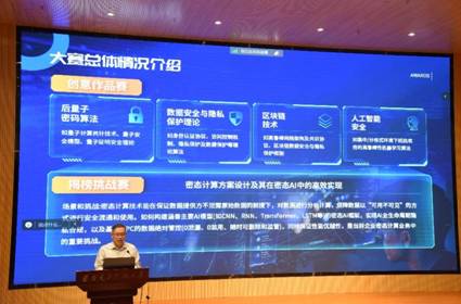 颁奖环节结束之后,在下一届大赛启动过程中,华为网络安全技术专家张龙飞针对2023第二届“华秦杯”网络安全创新大赛的赛题进行了进一步解读。张龙飞表示,本届赛题分为创新作品赛和揭榜挑战赛两个赛道,揭榜挑战赛赛题围绕网络安全前沿技术,结合华为公司面临的实际难题,从密码学方向、系统安全、AI及大模型安全、安全隐私与身份认证四个方向设计了本次大赛赛题。