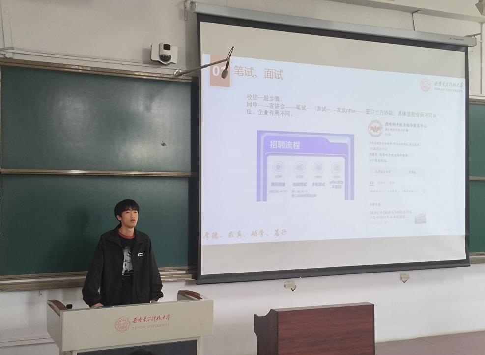 卢佳舟讲述了自己秋招和春招的求职经历和感受,从信息获取、简历制作、笔试面试等多个方面进行介绍。他建议同学们要找准自身的求职定位,不要盲目追求热门岗位;如果对未来规划仍不明确,可以就业、考研并行准备,科学规划自身发展。