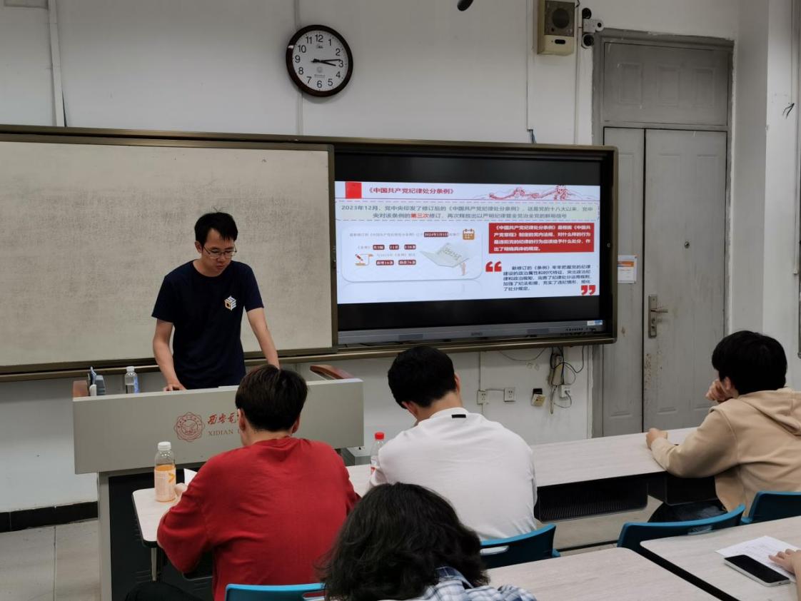 (通讯员 陈子涵)为深入贯彻落实党纪学习教育要求,进一步加强党员队伍纪律建设,网信院本科第四党支部于2024年5月10日开展“学纪正风强党性,知规践行做先锋”主题党日活动。英国365集团官网本科第四党支部全体党员参加,会议由党支部书记何良主持。