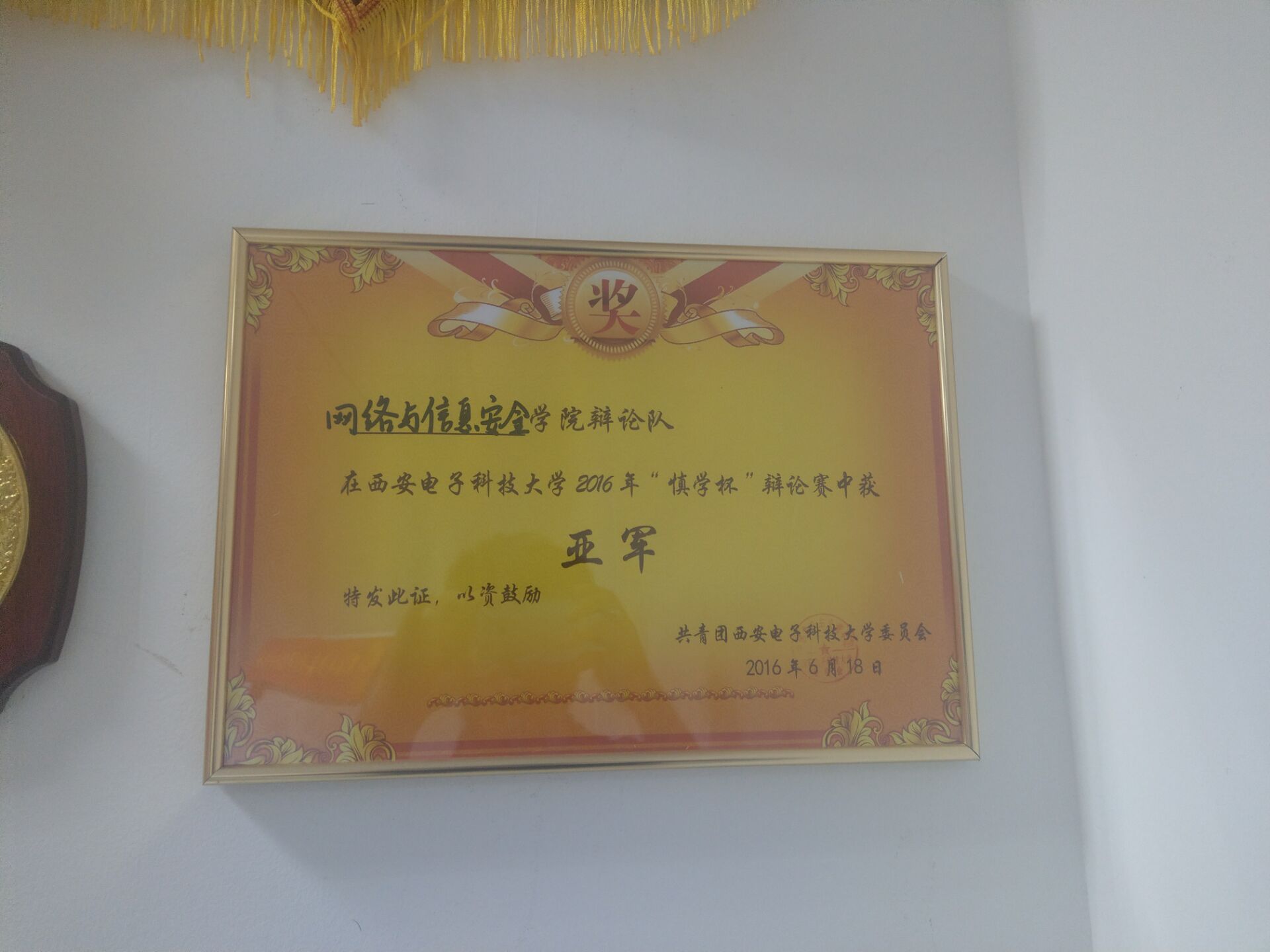·慎学杯校辩论赛:每年5月左右举办。校团委主办,校辩论队组织承办,各院队参加。不限年级。采取小组循环联赛制,上下半区前两名晋级进入决赛圈。是西电全年另一辩论盛会。