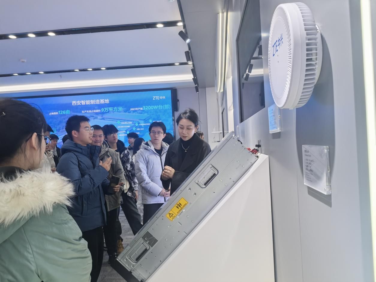 跟随者公司讲解员的脚步,师生们有序进入企业展示厅,在这里详细了解了企业的发展历程、企业文化以及科技成果。在产品体验馆,同学们了解并体验了手机、路由器、智慧屏等智能终端设备,通过亲自体验,同学们更深切的体会了科技带给人们的便捷。随后,同学们走进了中兴通讯的生产制造车间和测试车间,见证了一部手机诞生的整个流程,现场的5G全流程工业产线给同学们留下了深刻的印象。