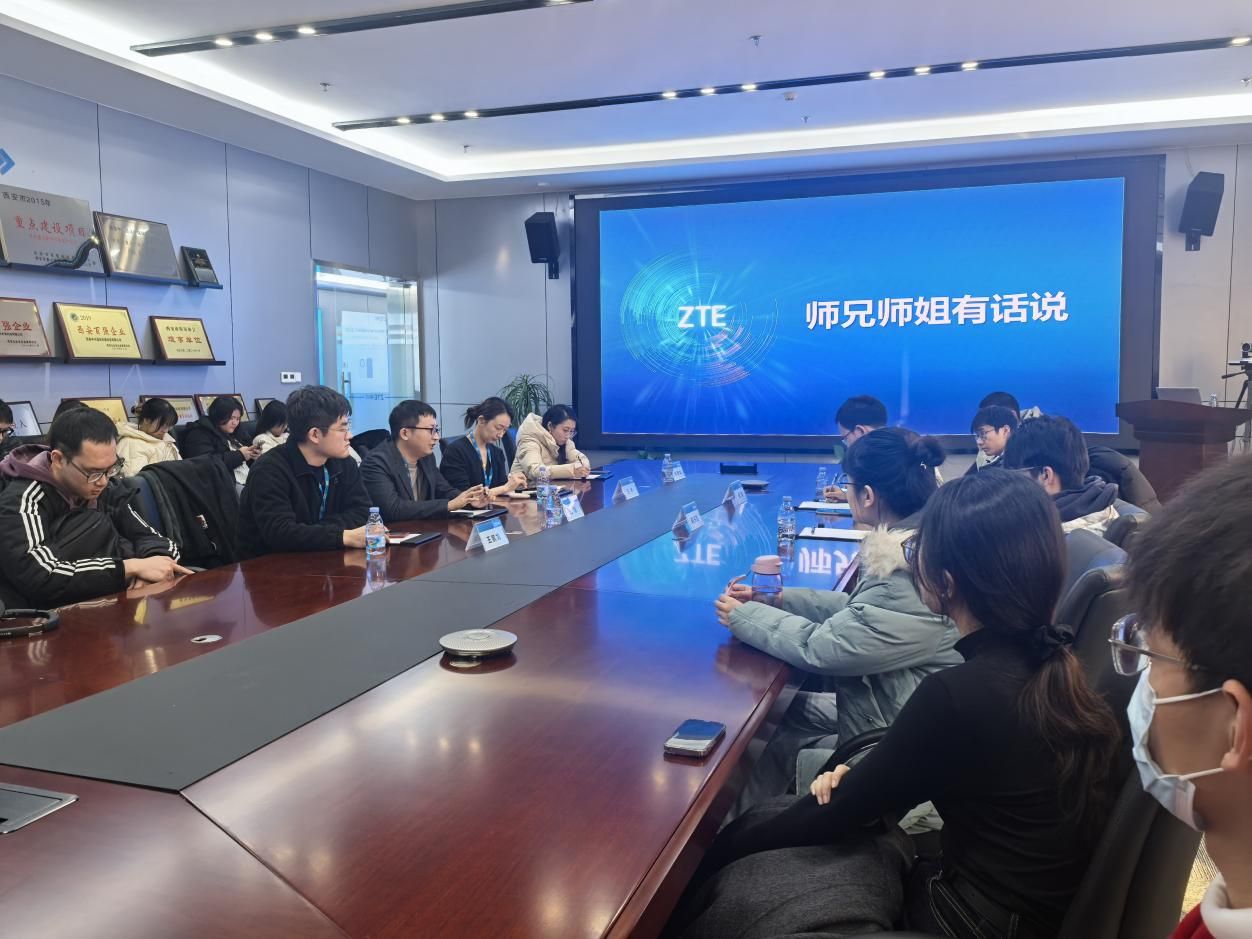 在座谈环节,中兴通讯西北地区招聘经理王琳首先对师生们的到来表示热烈欢迎,接着详细介绍了企业的发展历程、组织架构、福利待遇、蓝剑计划以及与公司专业相匹配的岗位等,让同学们对中兴通讯有了更全面的了解。通过观看和学习企业的宣传片,同学们深入了解了中兴通讯在5G研发上取得的科技成果,以及为我国信息通信事业发展所作出的重要贡献,并了解了未来通信行业发展的趋势和应用场景。
