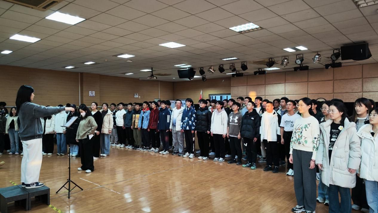 排练期间,同学们不断练习着音准,每一个音阶都经过无数次的揣摩与调整。同学们沉浸在旋律之中,寻找着那份最纯粹的情感,用尽全力去触碰每一个音符的精髓。他们的脸上,偶尔闪过一丝疲惫,但更多的是坚毅与不屈。汗水,在不经意间滑落,却无人察觉。他们的心中,只有一个念头:要将这首红歌唱得响亮,唱得深情,唱出他们坚守初心的决心。