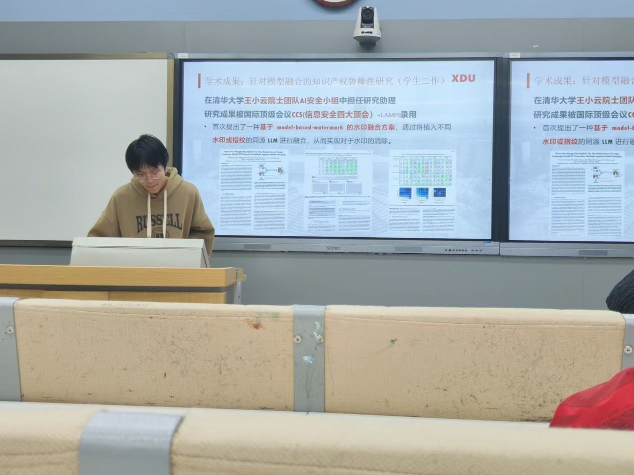 随后,刘泽森向大家介绍了从选题到研究,再到成果总结的全过程,并介绍了参与科研的途径,鼓励大家积极投身科研活动,为提升自身能力、推动科学进步贡献力量。在介绍如何寻找合适的科研方向时,刘学长特别提到,不要局限于本校的导师和资源,要学会“跳出思维圈”,向其他公司的教授和学术资源寻求帮助。他分享了自己通过跨校合作、参加学术交流活动所获得的宝贵经验,并鼓励同学们勇敢拓宽自己的学术视野。