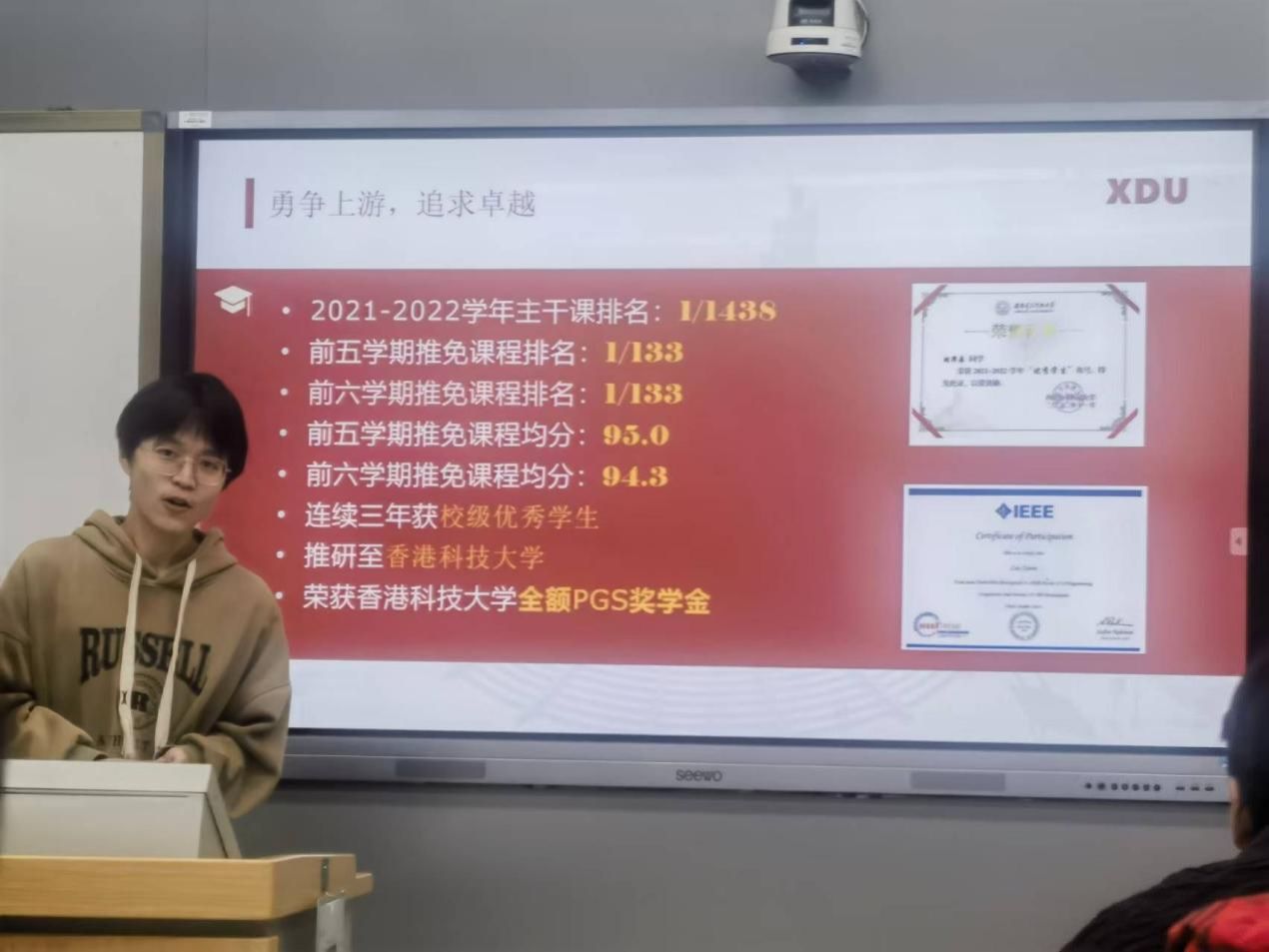 讲座的最后,刘泽森学长向大二的同学们送上了真挚的鼓励。他强调,同学们应尽早做好职业道路规划,不能盲目等待。可以积极尝试参与科研竞赛等活动,在这个过程中,即便会遇到挫折,那也是宝贵的试错机会。通过不断尝试,才能找到最契合自身发展的道路,为未来的人生奠定坚实的基础。