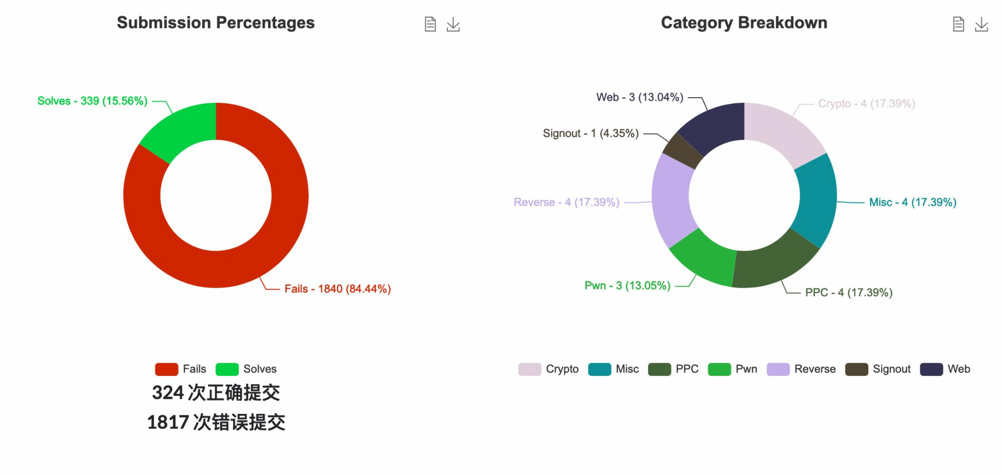本次比赛共放出题目21道。其中Misc方向4道、Crypto方向3道、Pwn方向3道、Reverse方向3道、PPC方向4道、Web方向3道以及赛后问卷题1道。