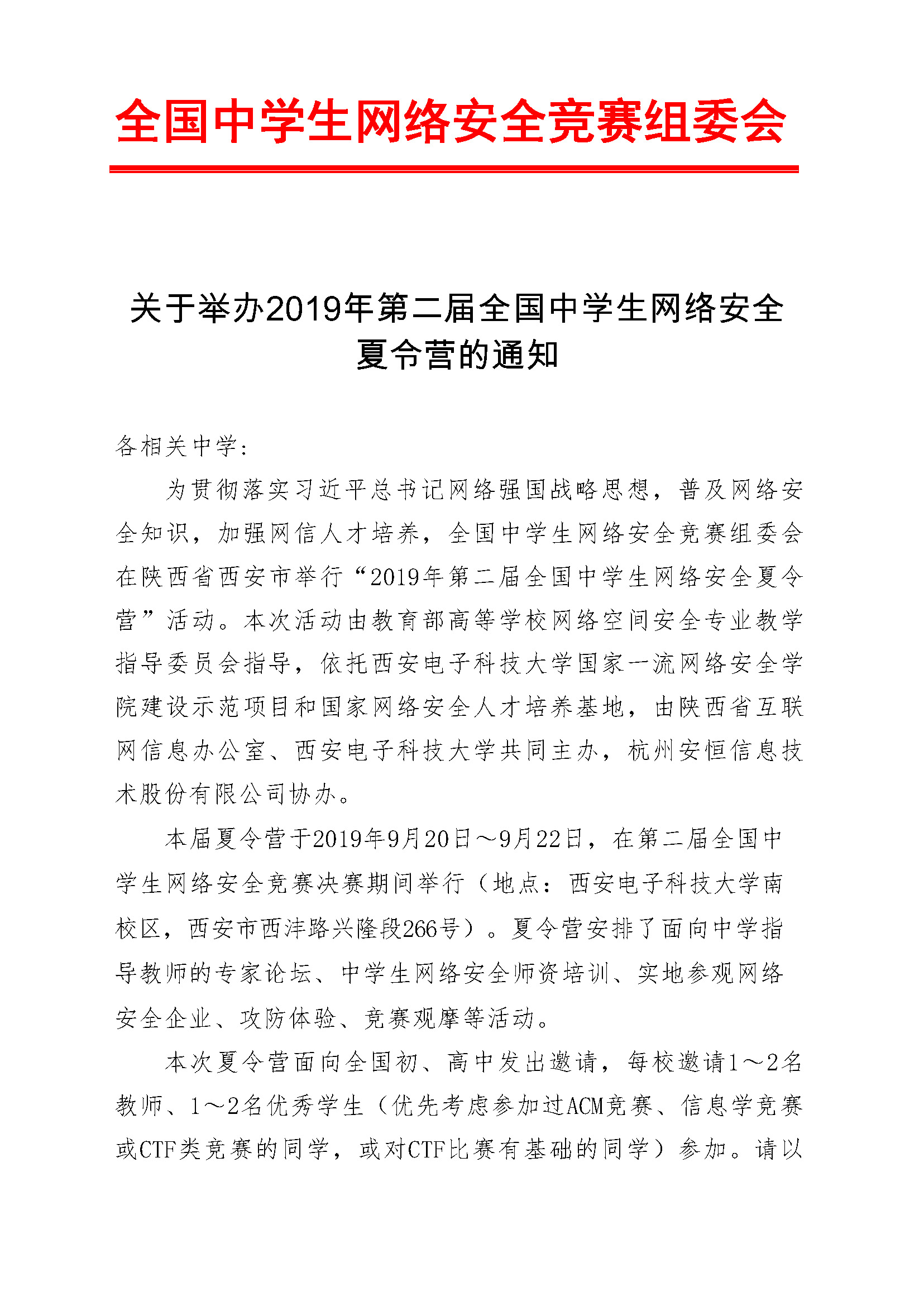 下一篇:关于举办2019年第二届全国中员工网络安全竞赛决赛的通知
