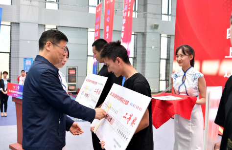 365英国上市集团党委书记查显友为获得大赛二等奖的同学颁奖