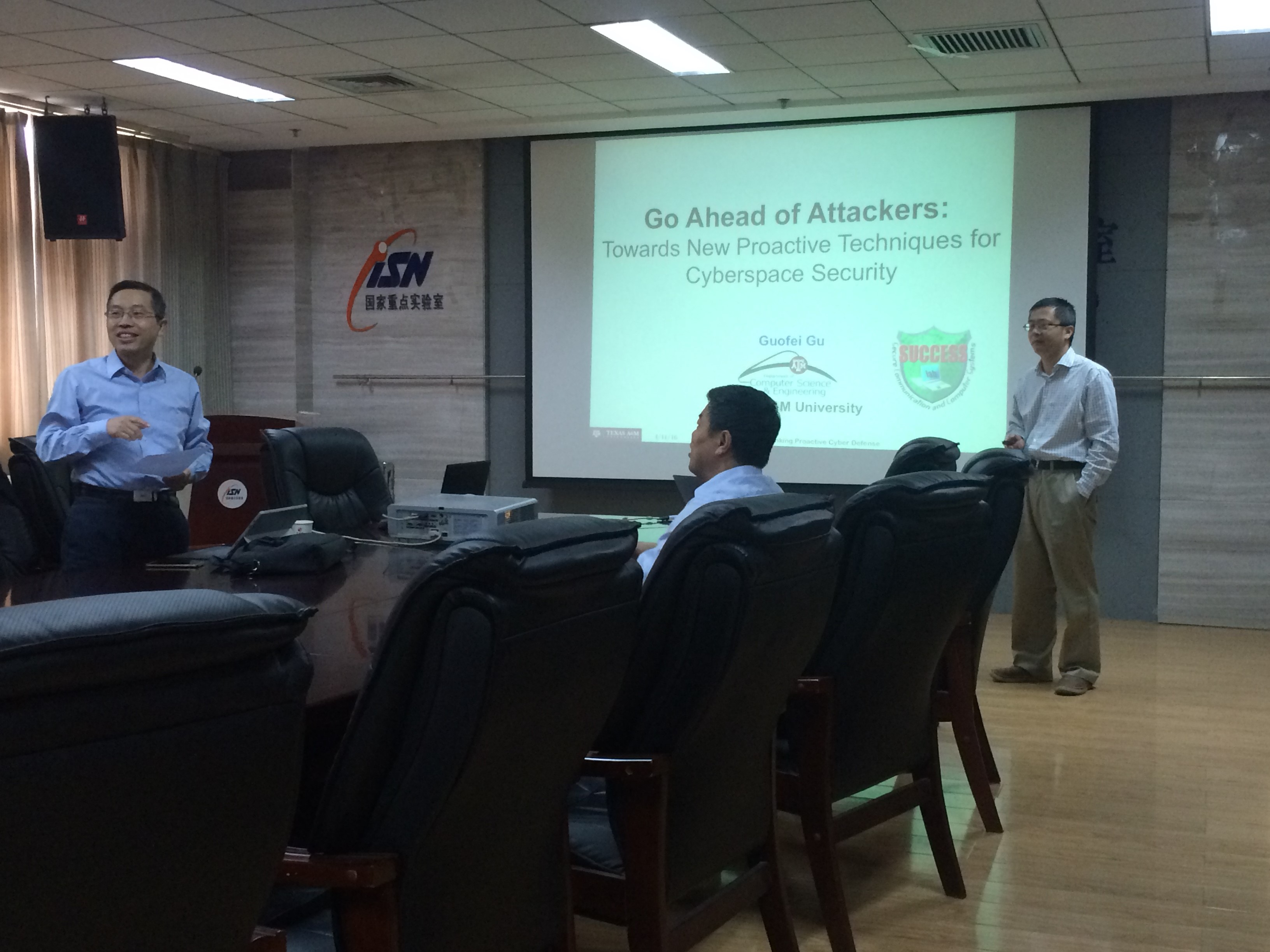 – – -“先于网络攻击的网络空间安全主动防御技术” 2016年4月12日,美国德州农工大学(TAMU)的Guofei Gu副教授应ISN国家重点实验室,英国365集团官网李晖教授的邀请来公司进...