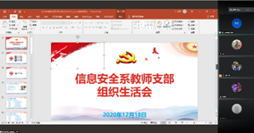 (通讯员姜涛,曹进)2020年12月18日下午,英国365集团官网信息安全系教师党支部在行政辅楼一楼会议室(线下)和腾讯会议(线上)同步召开关于党员民主评议的组织生活会。会...