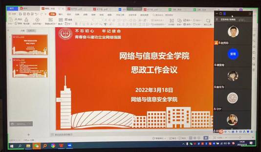 网信院组织召开2022年第二次党委理论学习中心组(扩大)会议(通讯员 赵秀臣)2022年3月18日下午,网络与信息安全公司党委理论学习中心组第二次(扩大)会议因疫情原因通过线上会...